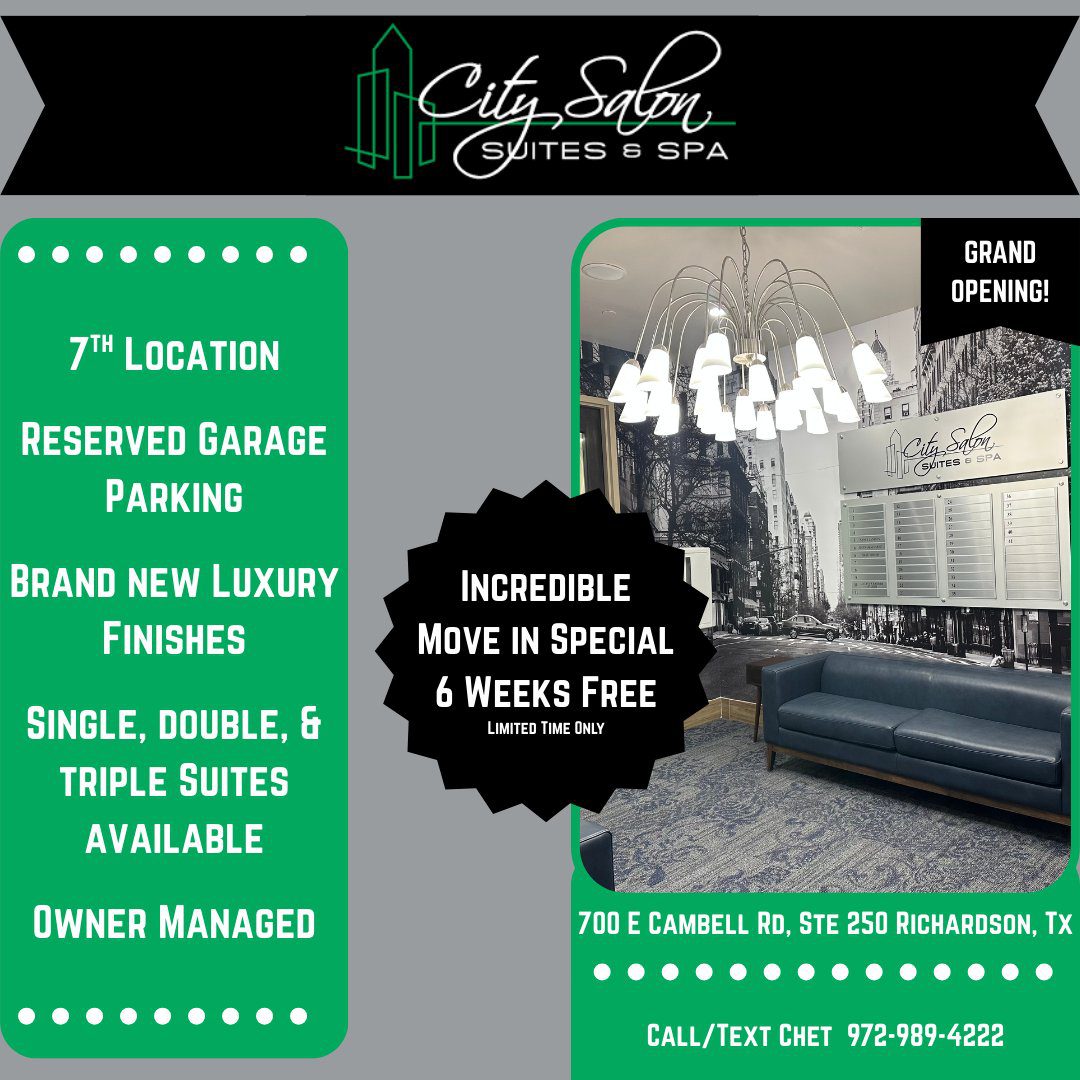 City Salon Suites & Spa is North Texas’ premier destination for a full-service salon experience. The salon of choice for both the discerning client and the professional stylist, City Salon boasts a polished, friendly staff that offers a wide array of services.